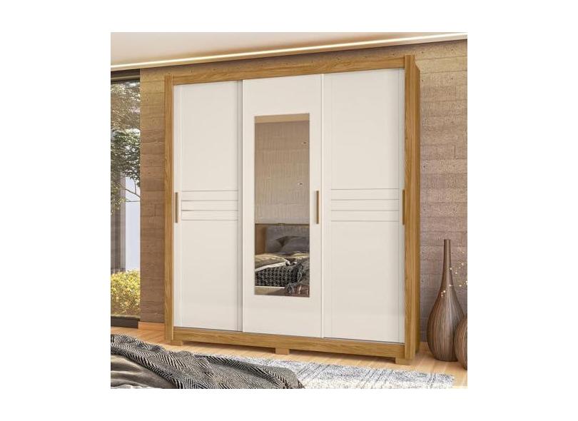 Guarda Roupa Casal com 3 Portas de Correr 202x222cm Canadá Moval Cor:Freijó/Off White