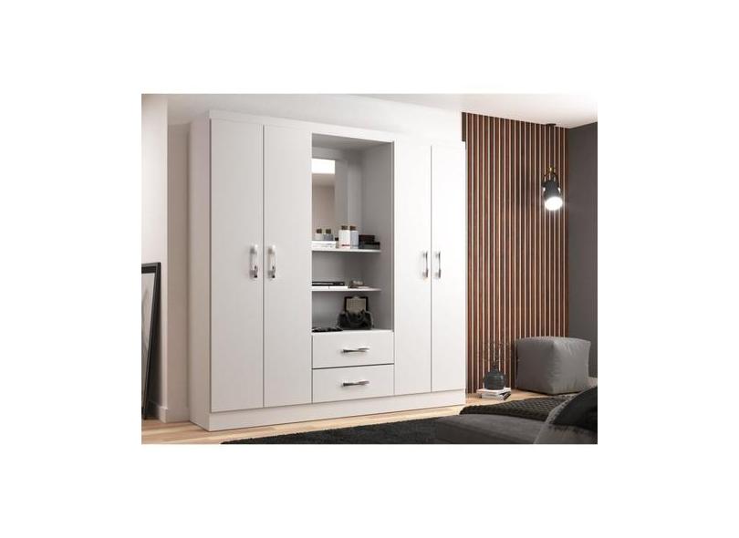 Guarda Roupa Casal Com 4 Portas 2 Gavetas Capelinha Evidência Móveis
