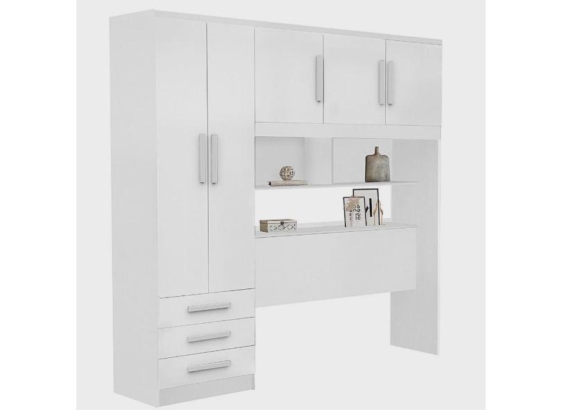 O menor preço encontrado no Brasil para Guarda Roupa Casal com Cabeceira Baú 5 Portas 3 Gavetas e Prateleiras Mexico Rud Rack Cor Branco atualmente é R$ 877,20.