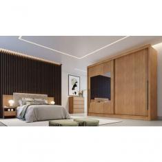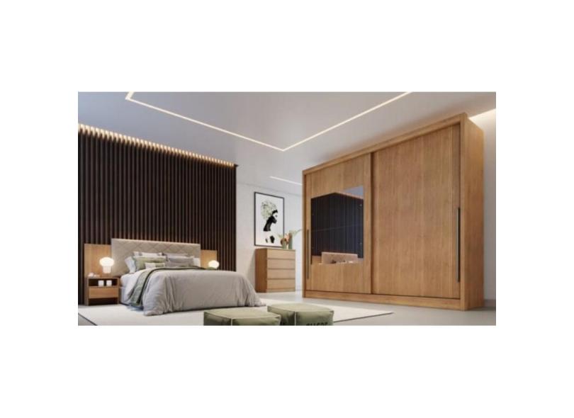 Guarda Roupa Casal Com Espelho 2 Portas 8 Gavetas Mônaco - Móveis Novo Horizonte - Cumaru
