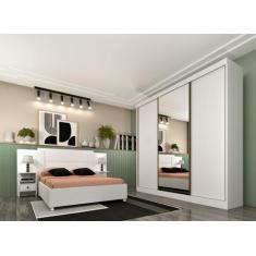 Guarda Roupa Casal com Espelho 3 Portas 4 Gavetas Dacar Tcil Neve