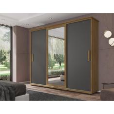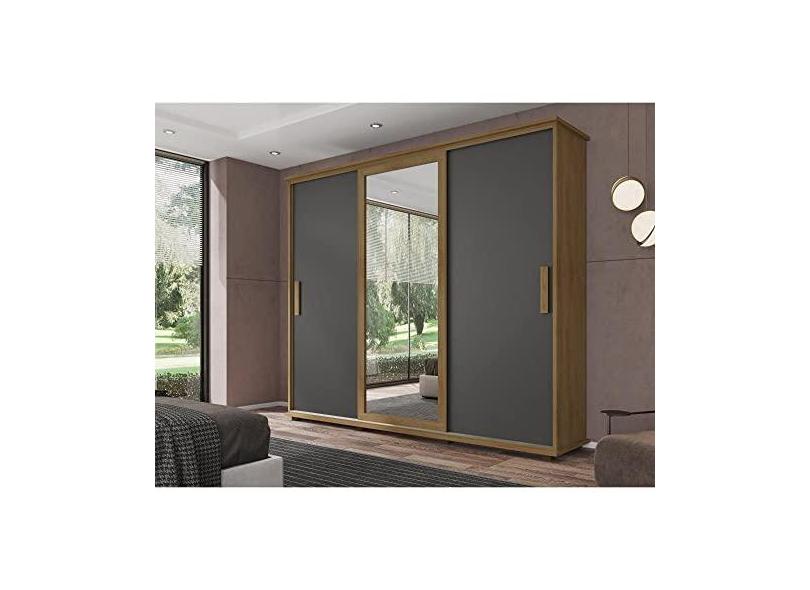 Guarda Roupa Casal com Espelho 3 Portas 4 Gavetas Espanha Rv Móveis Cinamomo/grafite