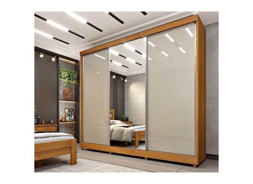 Guarda Roupa Casal com Espelho 3 Portas 6 Gavetas Bergame Espresso Móveis Cinamomo/Off White
