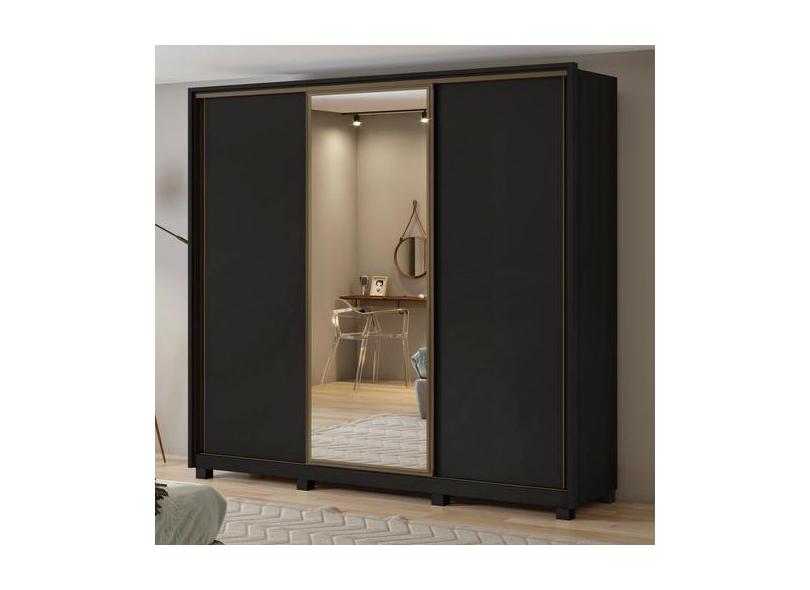 Guarda Roupa Casal Com Espelho 3 Portas De Correr 6 Gavetas Spazio Gla