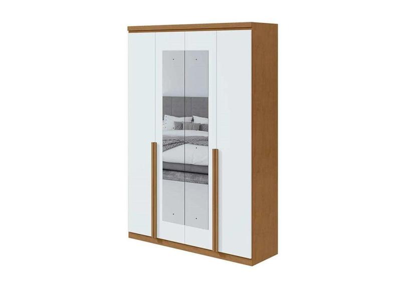 Guarda Roupa Casal Com Espelho 4 Portas 2 Gavetas Alonzo Lopas Amêndoa Clean/Branco