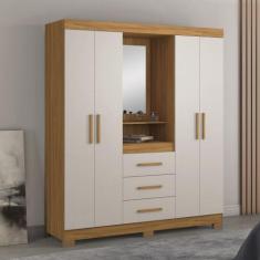 O menor preço encontrado no Brasil para Guarda Roupa Casal com Espelho 4 Portas 3 Gavetas 1 Nicho Capelinha Notável Móveis Freijó Trend/off White atualmente é R$ 641,26.