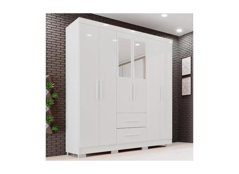 Guarda-roupa Casal com Espelho 6 Portas 2 Gavetas Estrela Premium Branco