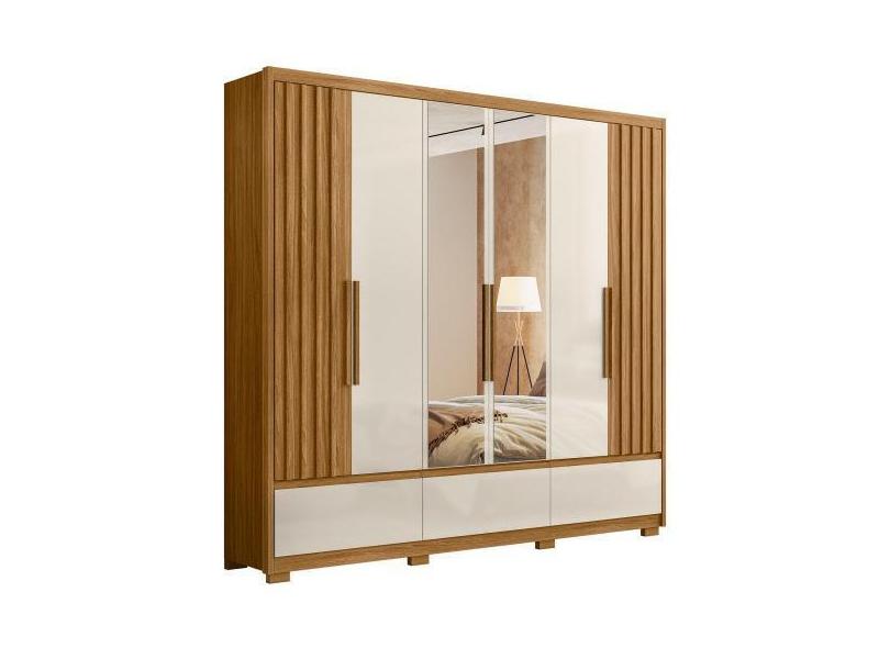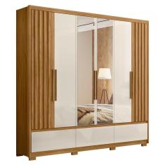 Guarda Roupa Casal Com Espelho 6 Portas 240cm Arizona M07 Freijó/Off W