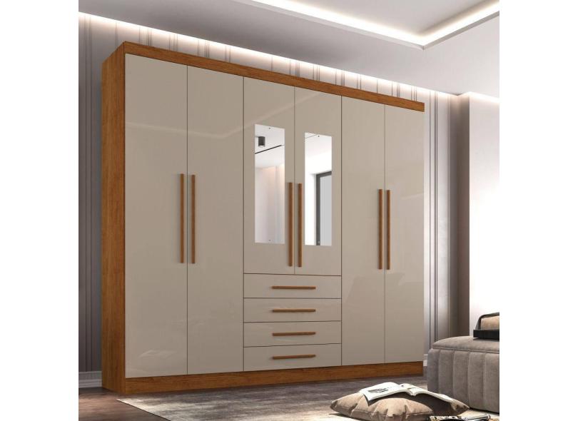 Guarda Roupa Casal com Espelho 6 Portas 4 Gavetas Lisboa Sallêto Móveis - Cinamomo/Off