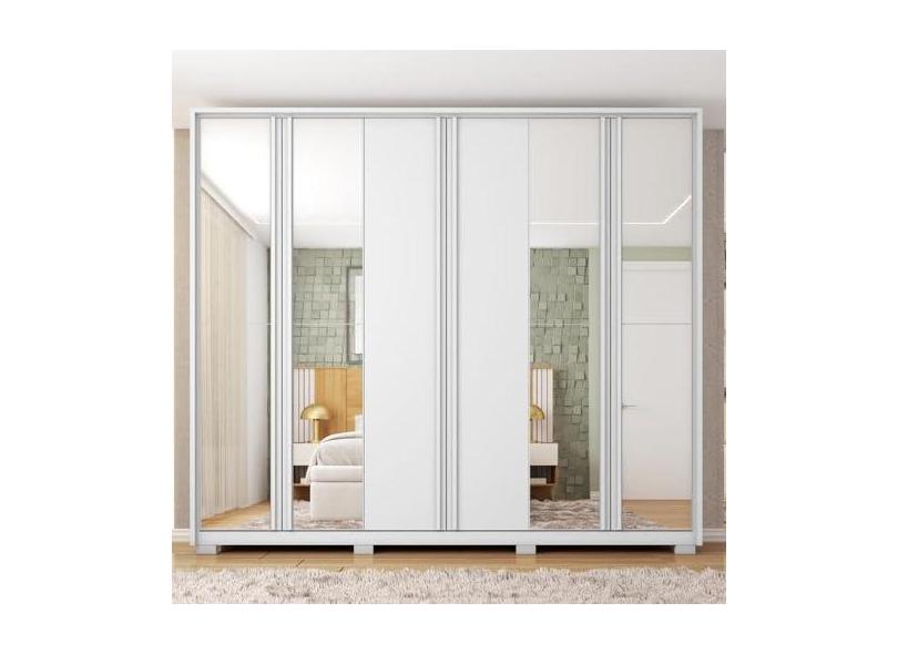 Guarda Roupa Casal com Espelho 6 Portas 4 Gavetas Suburban Branco Fosco