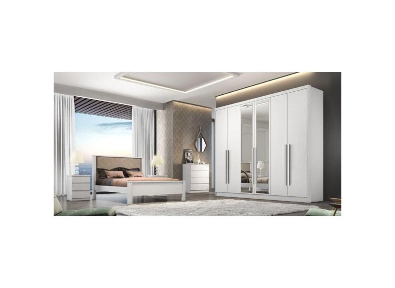 Guarda Roupa Casal Com Espelho 6 Portas 6 Gavetas - Livorno-Branco - Móveis Novo Horizonte