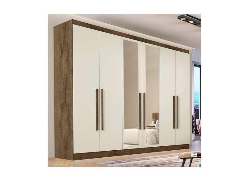 Guarda Roupa Casal Com Espelho 6 Portas 6 Gavetas - Oslo-Braúna/Off Wh