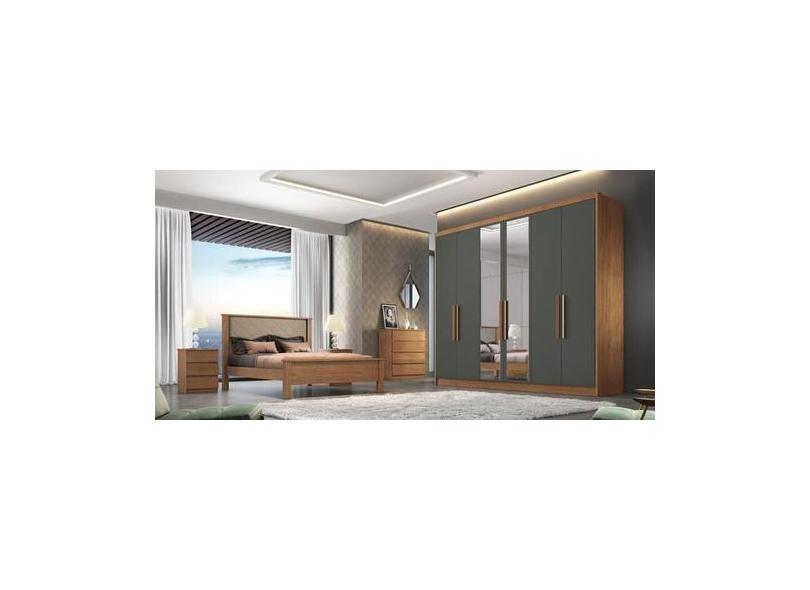Guarda Roupa Casal Com Espelho 6 Portas 8 Gavetas - Rizon-Cumaru/Grafi