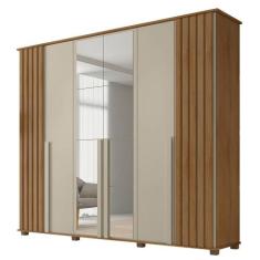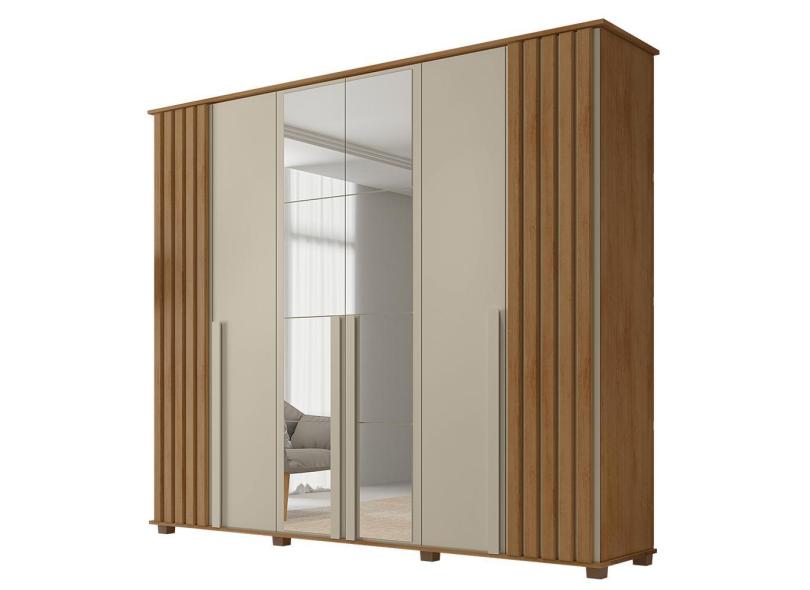 Guarda Roupa Casal Com Espelho 6 Portas Amsterdã rv Móveis Cinamomo e Off White