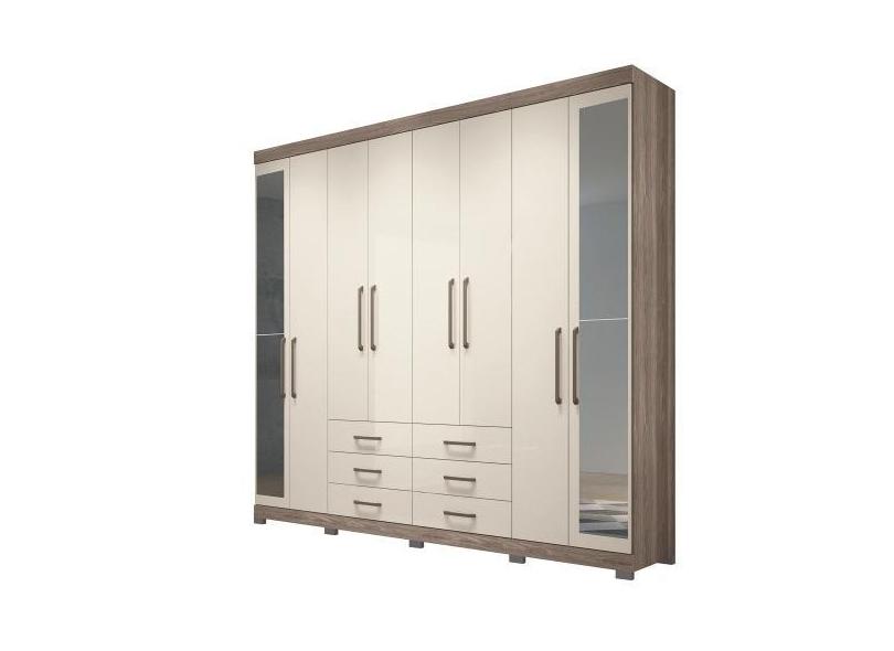 Guarda Roupa Casal Com Espelho 8 Portas Master Vip 8.6 Castanha/Off Wh