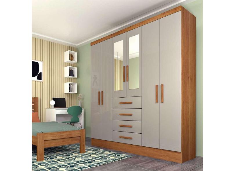 O menor preço encontrado no Brasil para Guarda-Roupa Casal com Espelho Arizona 6 pt 4 gv Cinamomo e Off White atualmente é R$ 1.488,04.