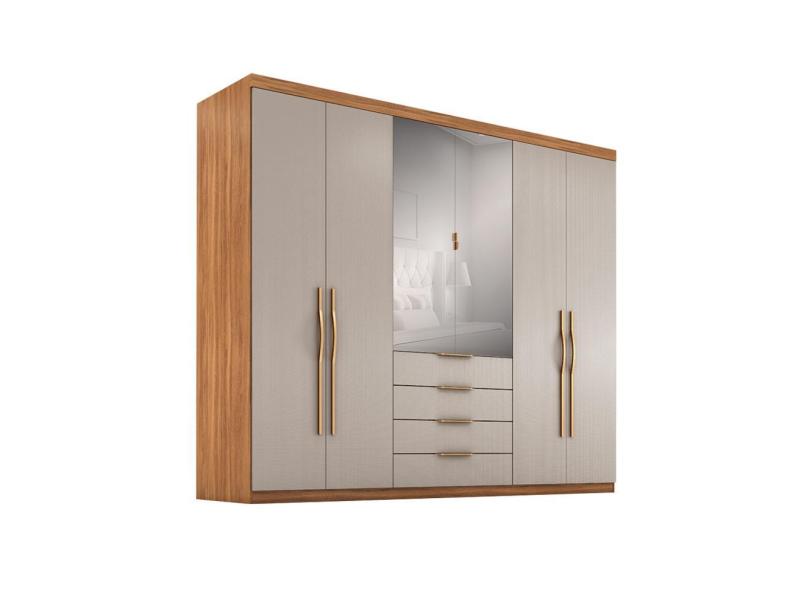Guarda-Roupa Casal com Espelho Giardino 6 pt 4 gv Amêndola e Nude