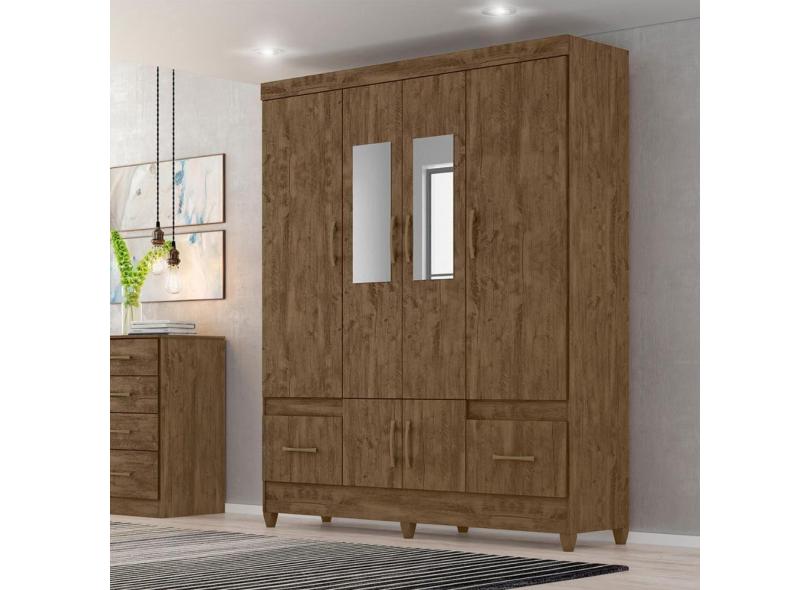 Guarda Roupa Casal Com Espelho Ms912 4 Portas 2 Gavetas Castanho Wood - Moval
