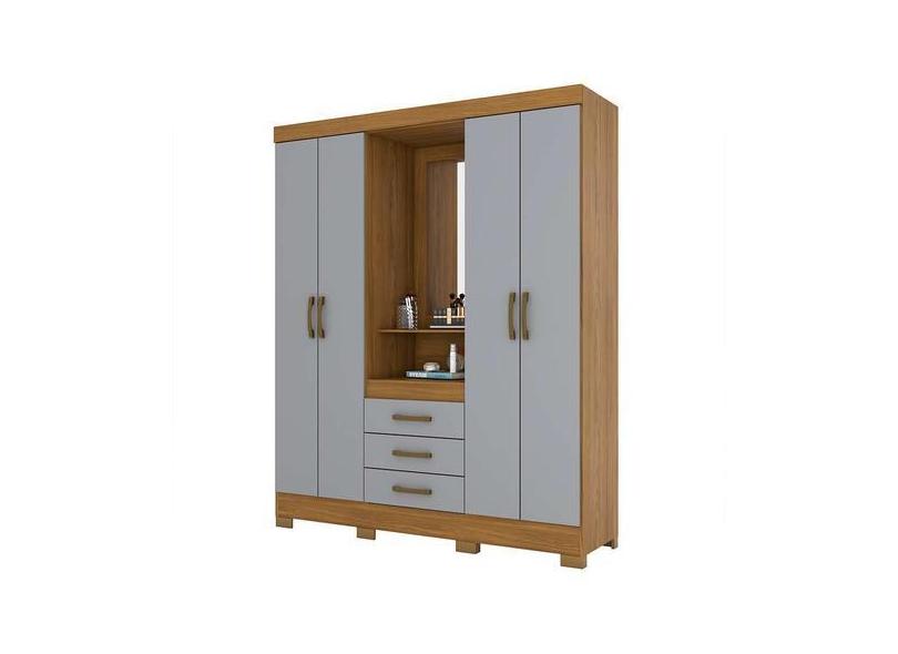 Guarda-Roupa Casal com Espelho Nápole 4 PT 3 GV Nature e Cinza - Briz