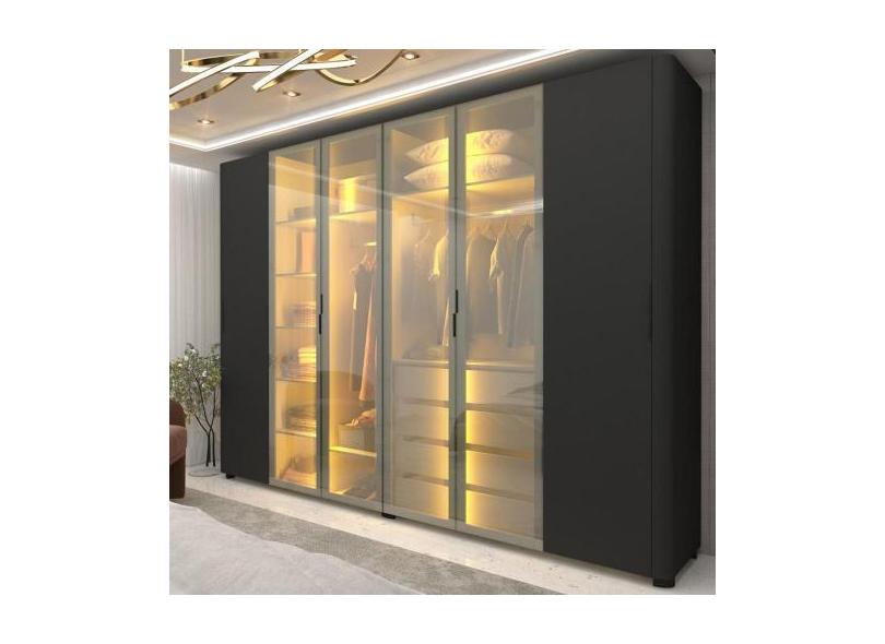 Guarda Roupa Casal com Vidro Reflecta LED e Pés 6 Portas 100 MDF Innov