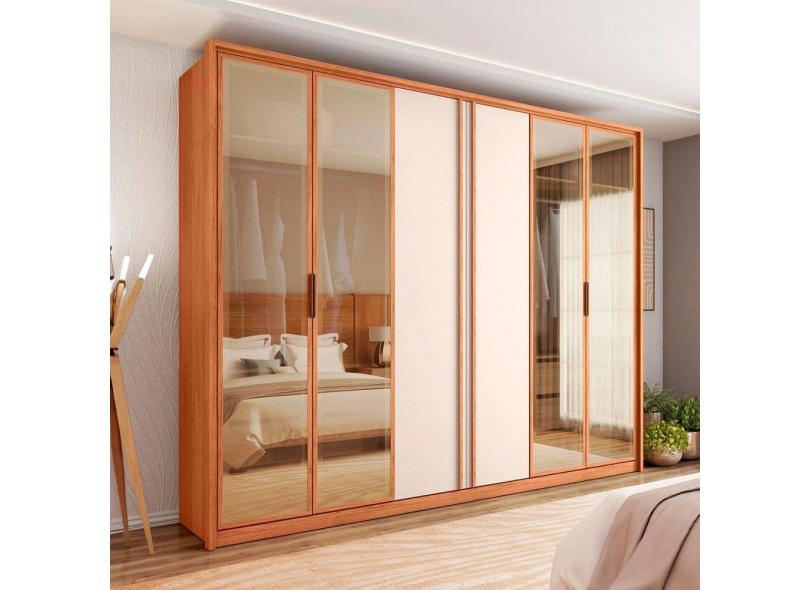 Guarda-Roupa Casal Cristal 6 Portas Reflecta 4 Gavetas Freijo/Off White - Caemmun