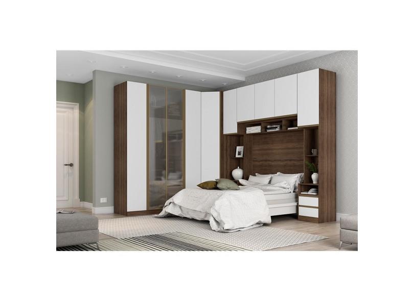 Guarda Roupa Casal de Canto Prime com Vidro Reflecta Nogueira Dourado Branco Mat Luciane Móveis