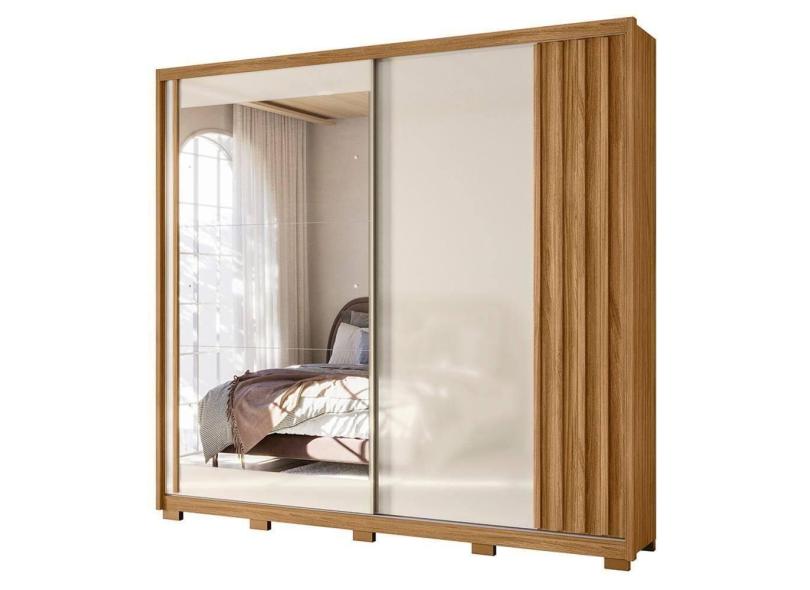Guarda Roupa Casal Dhara 2 Portas Deslizantes Freijó Off White Com Espelho - Moval Freijó Off White