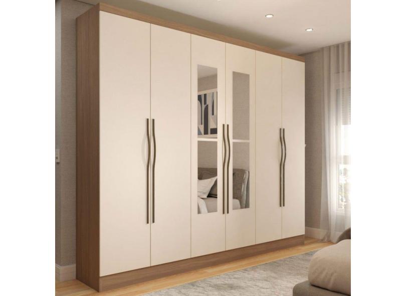 Guarda-Roupa Casal Dinamarca com Espelho Natural/Off White - Panorama Móveis