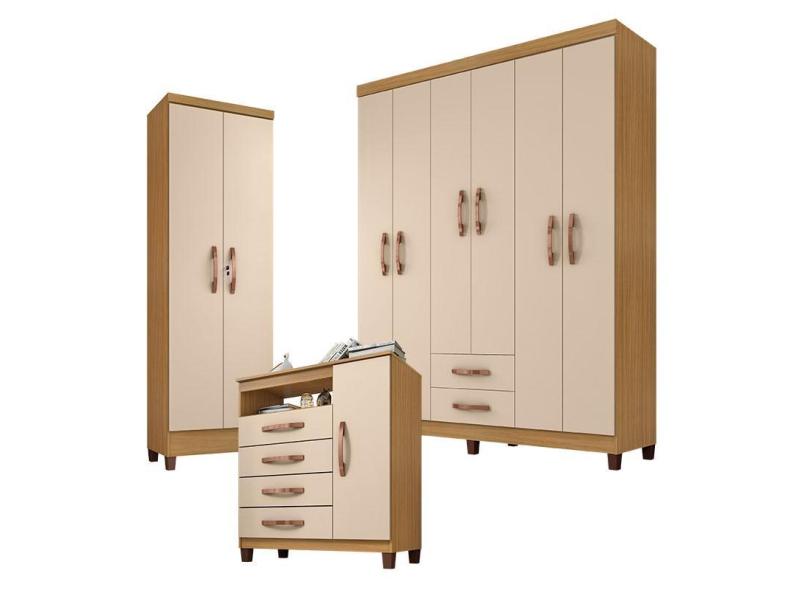 Guarda Roupa Casal e Cômoda Sapateira Cannes e Armário Multiuso Egito Carvalho Americano Off White – Incorplac