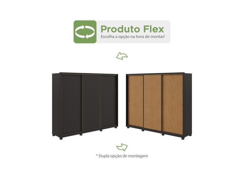 Guarda-Roupa Casal Em Mdf 3 Portas De Correr 6 Gavetas Com Pés Spazio