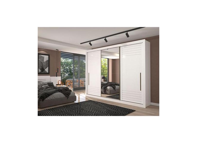 Guarda Roupa Casal Em Mdf 3 Portas De Correr Com Espelho Vitória Panan