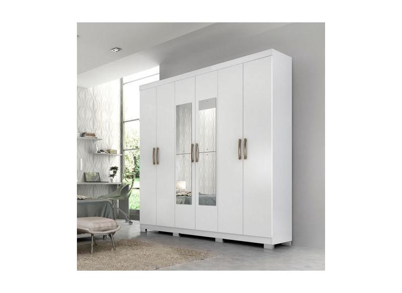 Guarda Roupa Casal em MDF 6 Portas 3 Gavetas Kit 4 Espelhos e 8 Pés Cl