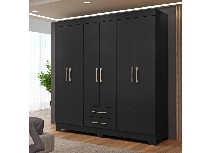 Guarda-Roupa Casal Escócia 6 Portas 2 Gavetas Preto - Maxel