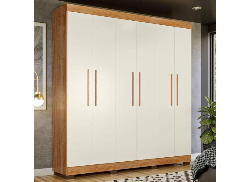 Guarda-Roupa Casal Flórida 100% Mdf 6 Portas 4 Gavetas Amadeirado/Off White 4460 - Tigus Baby