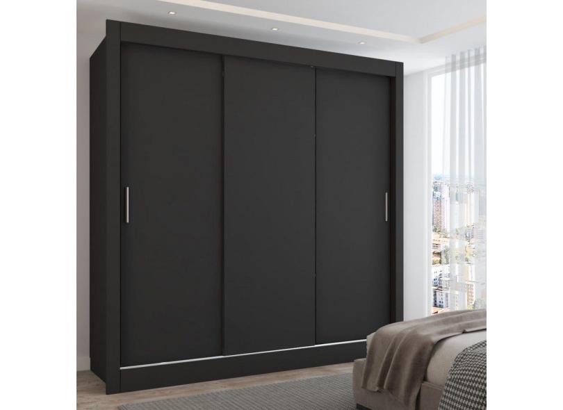 Guarda-Roupa Casal Flórida 3 Portas de Correr Preto Fosco - Panorama Móveis