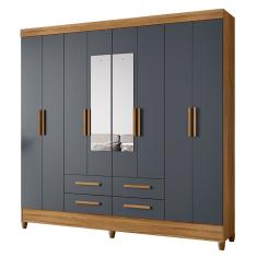 Guarda Roupa Casal Flórida 8 Portas E 4 Gavetas Freijó Cinza Com Espelho - Moval Freijó Cinza