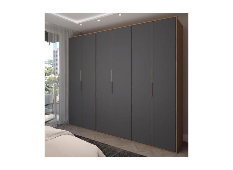 Guarda-Roupa Casal Galeão 6 Portas 6 Gavetas Amêndola Touch/Grafito -