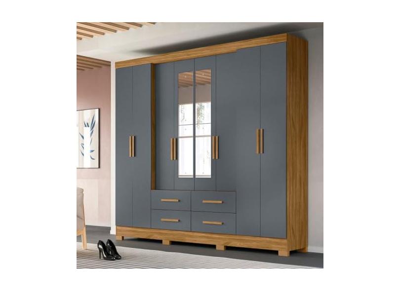 Guarda Roupa Casal Grande com Espelho 273x222cm San Lorenzo Moval Cor:Freijó/Cinza
