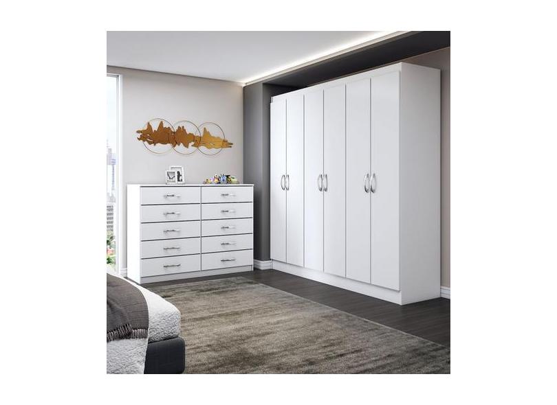 Guarda-Roupa Casal Harper 6 Portas 2 Gavetas Com Cômoda 10 Gavetas Bra