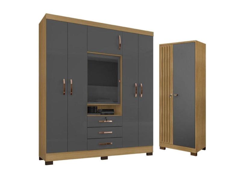 Guarda Roupa Casal Imperial com Armário Multiuso Versátile Carvalho Americano Grafite - Incorplac
