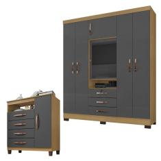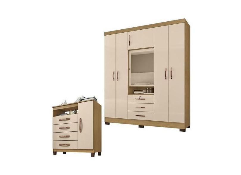 O menor preço encontrado no Brasil para Guarda Roupa Casal Imperial Com Cômoda Sapateira Cannes Carvalho Ameri atualmente é R$ 1.114,38.