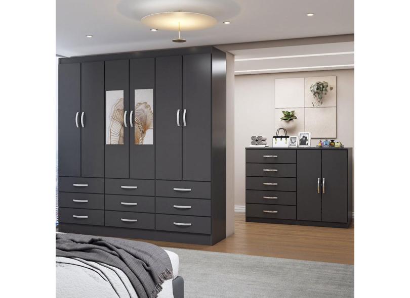 O menor preço encontrado no Brasil para Guarda-Roupa Casal Iris 6 Portas 9 Gavetas e Espelho com Cômoda 2 Portas 5 atualmente é R$ 1.073,90.