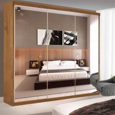 Guarda Roupa Casal Isabela Freijó 3 Portas De Correr E 9 Espelhos Minastex