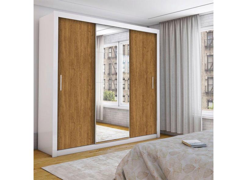 Guarda Roupa Casal Isabela Luxo Com Espelho 3 Portas De Correr 4 Gavetas Carioca Moveis Branco Com Freijó