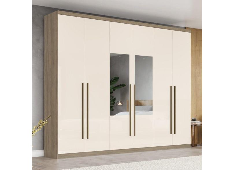 Guarda-Roupa Casal Jade 6 Portas 3 Gavetas com Espelho Rústico/Off White - Henn
