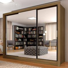 Guarda Roupa Casal Layla 3 Pts 03 Espelhos Boreal/ Preto- M. Arapongas