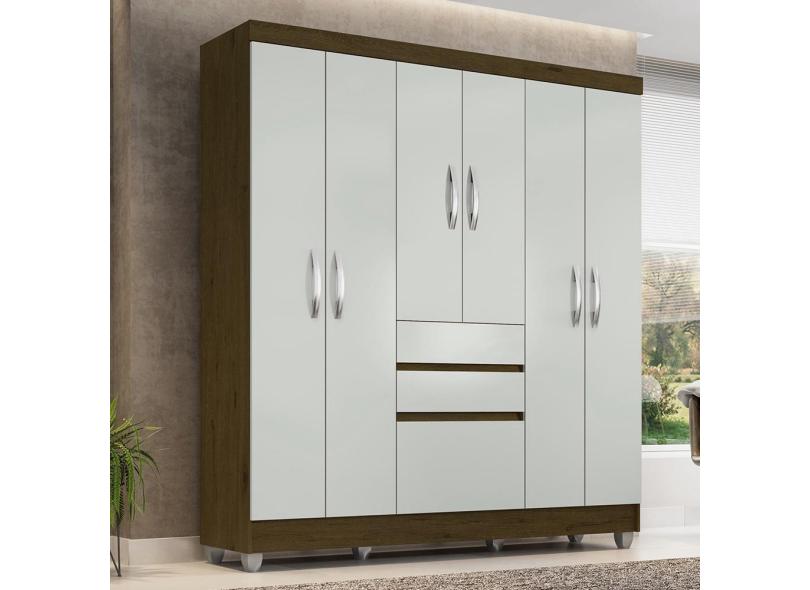 Guarda Roupa Casal Lia 6 Portas Cedro/ Off White - Moveis Arapongas