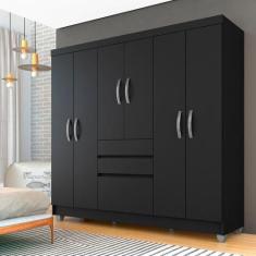 Guarda Roupa Casal Lia 7 Portas Preto Fosco - Moveis Arapongas