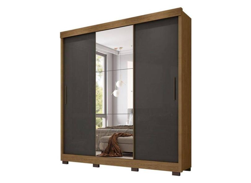Guarda Roupa Casal Lion 3 Portas de Correr Freijó Grafite Perolizado com Espelho - Móveis Leão
