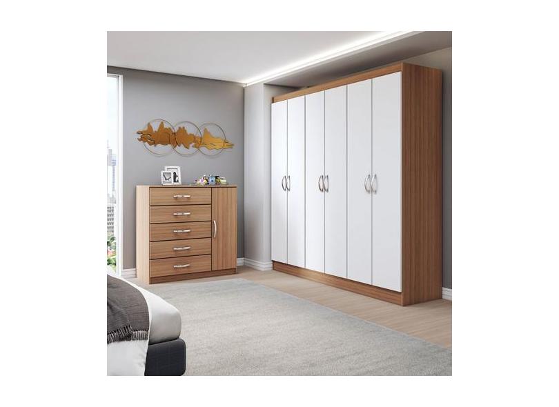 O menor preço encontrado no Brasil para Guarda-Roupa Casal Luke 6 Portas 2 Gavetas com Cômoda 1 Portas 5 Gavet atualmente é R$ 1.071,90.